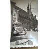 MUJER JOVEN Y AUTOCAR. EDIFICIO AYUNTAMIENTO DE ULM. ALEMANIA. 1956