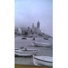 EN LA PLAYA CON BARCAS. AÑOS 50